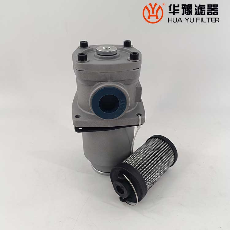 這種過濾器設有濾芯污染堵塞發訊器和油路旁通閥,當回油壓力達到0.35MPa時,發訊器發出開關信號或報警,還可直接從發訊器的表盤上讀出回油壓力值,以提示操作人員及時更換濾芯,保證系統油液的清潔度。更換濾芯只需旋開過濾器端蓋即可。當回油壓力上升至0.4MPa時,過濾器內的旁通閥便自動卸荷,以避免回油壓力過高造成整個系統工作