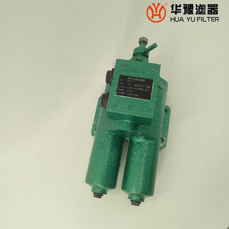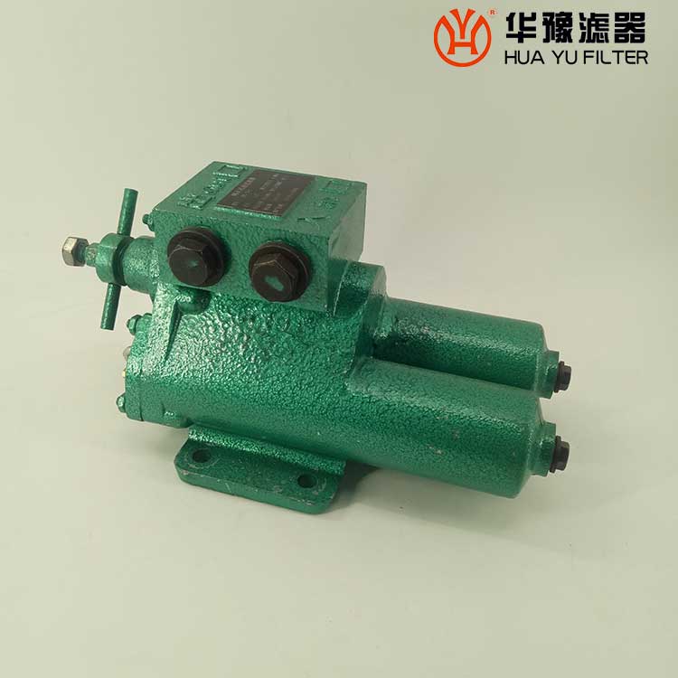 每一濾芯組件由濾器蓋、濾芯套筒、濾片及濾片圈等組成,濾器蓋頂部裝有放氣閥,供排出濾器內腔的空氣用。 濾片套在濾芯套筒上,是濾器的主要過濾元件,由濾網,支承網及波紋隔盤等組成,濾網的網目數由用戶根據需要選用。轉換閥體是由鑄鋁鋁合金制成的椎體,與閥孔研磨配合,閥體上鑄有上下兩油道孔,上油道孔一端通濾芯上方油腔,一段通濾器出口,下油道孔一段通濾芯腔,一段通濾器進口,當轉換閥迅速從一極限位置轉至另一極限位置時,閥體將一濾芯腔的通路關閉,而將另一濾芯腔的通路打開,此時,壓力油從濾器進口流入濾芯腔,經濾網過濾后的清潔油經上方油腔從出口流出,達到濾清油液的目的。轉換閥體軸端頭上的箭頭指向接通的濾芯腔的一邊。